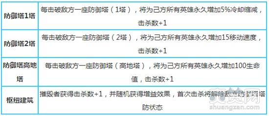 ii. 双方3路9塔开局前10分钟为塔防状态(塔防:减伤80%),可以通过击杀敌方阵营枢纽建筑,提前解除敌方防御塔塔防。