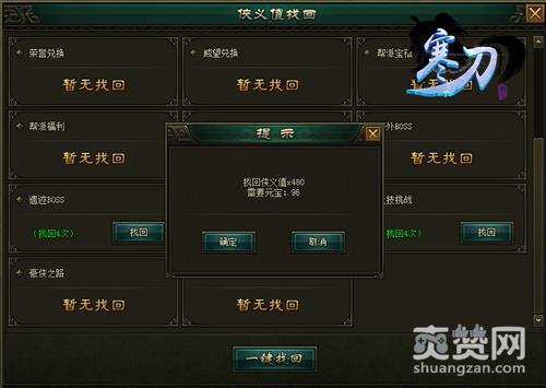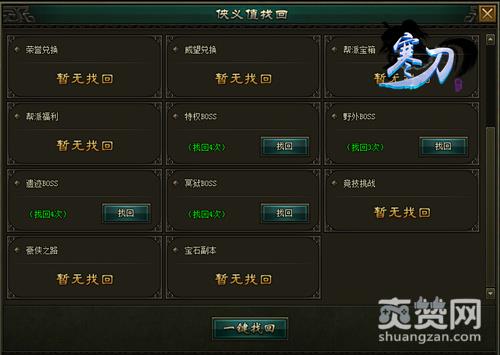 玩家在游戏中提升9377《寒刀》侠名等级,可以获得各种称号,且能得到侠名升级奖励,提升自己的各种外观等级哦。如果你因为某些特殊原因,没有完成当天的侠义值,那么你可以通过侠义值找回的功能进行找回。