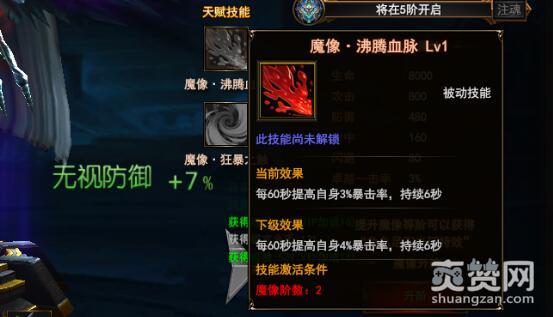 看过了4阶的魔像,其实关于魔像还有很多内容需要了解,比如天赋技能。魔像?沸腾血脉,一阶已经可以在每60秒提高自身3%暴击率,持续6秒。如果天赋技能等级越高,提高暴击率的比例更高,也更强大。