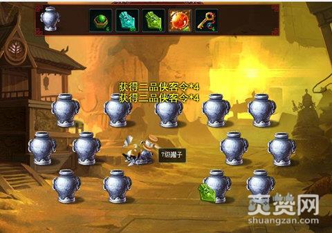 这个系统的设定是百分百中奖,任意砸破一个罐子都有机会获取经验丹、内功丹和侠客令等资源,是不是很任性!玩家可以用银两或者元宝来升级罐子,高级的罐子砸到的奖励也会多些。没有什么是砸罐子不能解决的,如果一个不行,那就砸两个!总会有意外惊喜等着你。