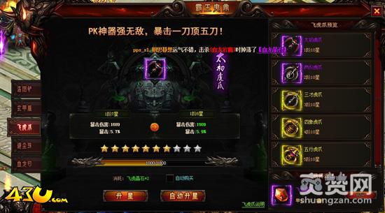 新手玩家在游戏前期升级较快,不同等级的玩家可以开启不同系统进行提升,比如天师、鬼鼎、坐骑、神翼、锻造、成就、法器等等,每种玩法的提升都能给玩家带来不同的效果,比如通过主界面上的鬼鼎按钮打开飞虎爪界面,飞虎爪共5阶,低级的飞虎爪可通过消耗一定数量的飞虎晶石进行升级,提升为高1阶的飞虎爪,越高级的飞虎爪能够提供更多的暴击几率和暴击伤害。