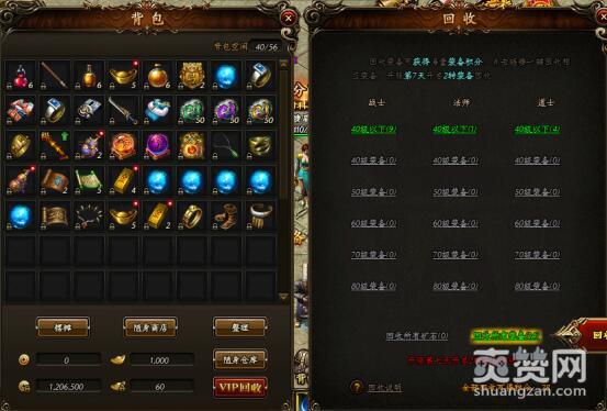 装备回收NPC在沙漠荒城的安全区处,找到他对话就能立刻开启傲天攻沙加强版“装备回收”。初看像是一笔赔本的买卖,不需要的装备回收之后得到的装备积分都不知道如何用,直到进入了兑换商城才柳暗花明。传说中的2转装备也可以回收,需要等到开服后7天系统才能接纳。装备回收最低的装备等级标准为40级,还有矿石也可以回收。装备回收系统可以自动辨识高级装备,不至于因你大意就轻易将他们毁掉。不然,小编背包中靠充值收获的裁决之杖也许一手抖就化为乌有。