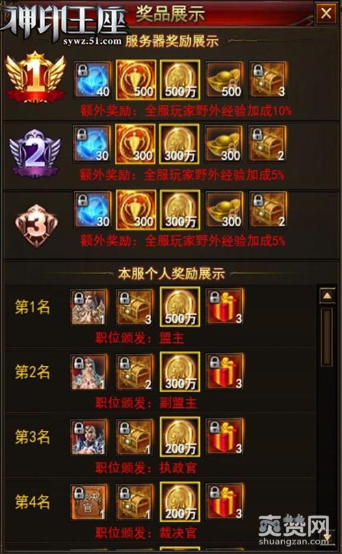 活动中积分决定服务器排行榜与个人排行榜的名次,服务器前三名可获得对应奖励,个人排前15名可获得对应奖励,奖励在活动结束后以邮件的方式方法。