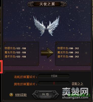 大家可以通过点击主界面的神炼图标进入神翼领取界面,神翼共分为10个等级,越高等级的神翼能够提供给佩戴者更高的物理攻击。其中,低级的神翼可以消耗一定数目的神翼碎片进行升级,提升为更高一级的神翼哦!