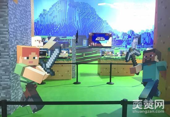 而今年网易主打的游戏是其独家代理的像素风沙盒游戏《我的世界》,而该游戏的展台也很好的体现了游戏的特色。