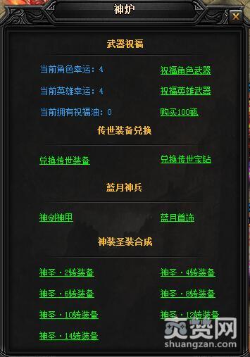 在地图中央,我们会看到一个大神炉。点开之后会发现其中的神装圣装合成追加了六大项。分别是神圣·2转装备、神圣·4转装备、神圣·6转装备、神圣·8转装备、神圣·10转装备以及神圣·12转装备。