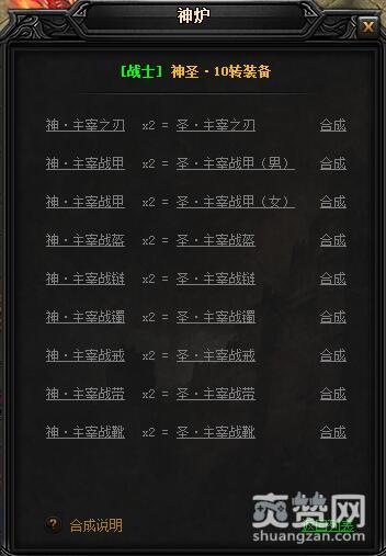 战士10转圣装的兑换公式如下: