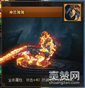 神兽狴犴,全体属性:攻击+40,防御+30,兵力+400。