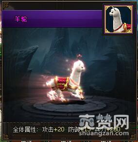 羊驼,全体属性:攻击+20,防御+15,兵力+200。