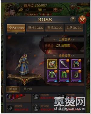 玩家击杀个人BOSS,将会获得强化石以及最高达到紫色品质的极品装备。个人BOSS的开放等级将会根据玩家的当前等级而开放。比如说你等级为100级,那么开启的个人BOSS则是10-100级,更高等级的个人BOSS需要你达到相应等级后方可开启。