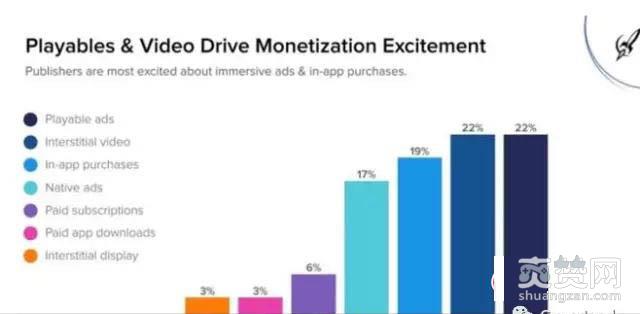 发行商们表示,他们最看好的是可玩广告以及沉浸式广告,但目前只有48%的发行商在用。而且,只有25%的发行商认为可玩广告能够带来良好的游戏体验,这意味着,虽然新形式的广告仍存在不确定性,但仍有相当一部分发行商对此看好。