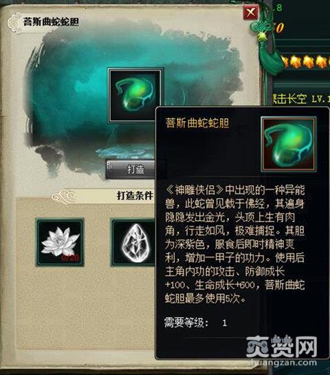 除了异兽,奇珍录里还有一栏比较吸引人眼球。俗话说,人在江湖飘,哪有不挨刀。于是各门各派都会研制出一些独门秘药,专治跌打损伤。奇丹篇中有很多灵丹妙药或许你会眼熟,例如蛇胆。武侠题材的小说常见蛇作为灵药的素材,其实蛇确实是个很有灵性的动物。蛇胆不仅清凉解毒还有增强内力的功效,尤其是一些罕见的蛇类,做成药用效果更佳。