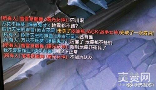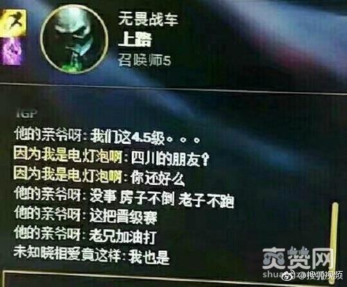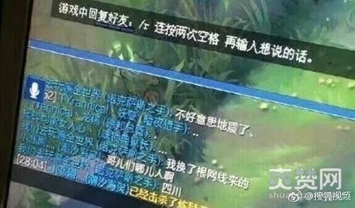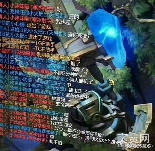 由于地震发生时间是晚上9点左右,当时正有不少四川小伙伴在玩《英雄联盟》,游戏中的聊天透露了四川人的乐观精神。