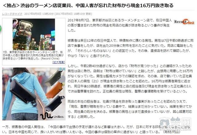 中国顾客在日本涩谷拉面店吃面,被日本人偷走16W现金,日本网友评论炸锅。