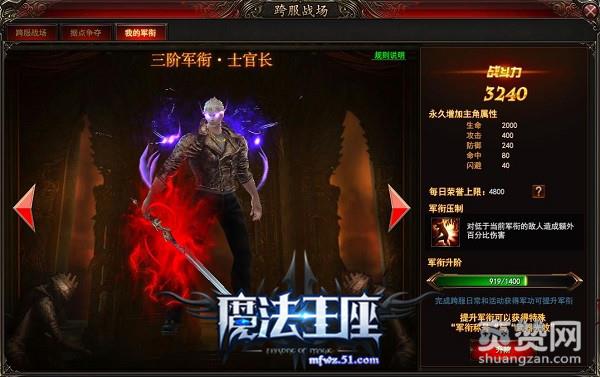 在《魔法王座》跨服战场当中,还有着自称体系的战场军衔奖励及荣誉兑换设定。战场军衔,意味着玩家在《魔法王座》跨服战场当中的身份地位,并且会随着玩家积极参与跨服战场的作战而逐步积累提升。更高的军衔,将让玩家在战场上拥有更强悍的实力;荣誉则是在跨服战场上击杀敌人或怪物后才可获得的重要奖励,并可用于兑换各类技能书籍、升阶道具等珍稀物品。