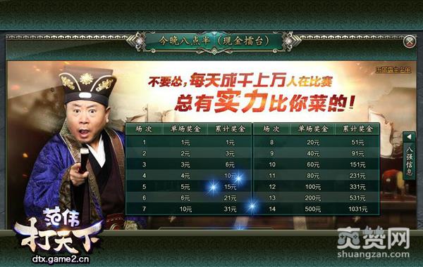 作为哥们网《范伟打天下》最重头的现金玩法,今晚八点半一直以来都是玩家们每天最期待的游戏内容之一。今天的哥们网《范伟打天下》进阶攻略,我们就来详细地了解下今晚八点半这个玩法。 网页游戏《范伟打天下》抢先体验通道:http://dtx.game2.cn/fwq/list-4768-1.htm