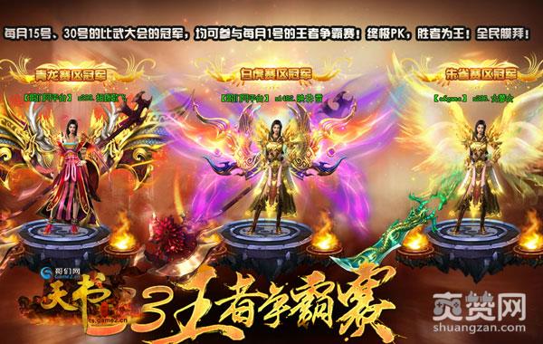 在哥们网《天书世界》,每个月声势浩大的比赛就属王者争霸赛了!只有每月15日和30日比武大会的冠军,才有资格参与争夺天下第一的王者争霸赛!