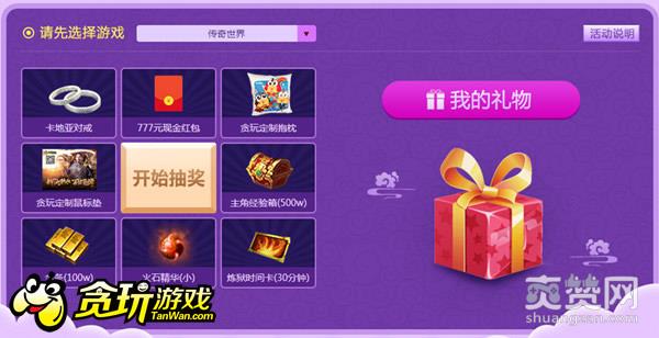 以前,可能是你给别人送礼。那今天,就让贪玩游戏送你一次礼吧。凡进入到贪玩游戏七夕活动现场的玩家,都可获得一次免费抽奖机会。卡地亚对戒、777元现金红包、贪玩定制鼠标垫、游戏超值道具等奖品都是100%机会获得。每个玩家每天最多可抽奖六次,赶快来试下你的手气吧。