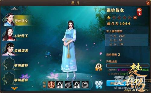 在游戏中行走江湖,怎能没有美女相伴呢,子啊51《楚乔传》中就有一个美女相伴玩家的系统——星儿系统,星儿可以以侍女、谍者、特工和皇妃等身份伴您左右,一起战斗,可以一定程度上地提升玩家的战斗力,下面就和小编一起来详细了解一下吧!