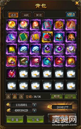 玩家背包分为三种:道具、消耗、其他。背包用格来进行表示,玩家可以在背包中存放各种物品,并随时使用。系统默认给新手玩家一定数据的背包格数,玩家可通过任务、活动或购买等多种方式进行背包扩展。背包每格所放物品的堆叠数依据物品的类型不同。