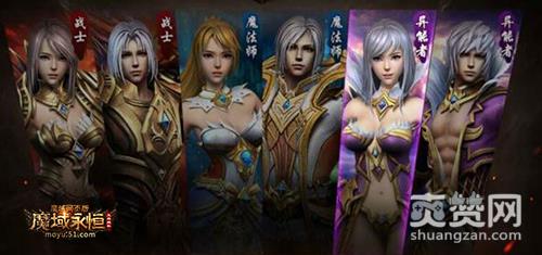 不同于其它游戏的还有51《魔域》有着更多的角色选择。游戏中一共有战士、法师、异能者、血族、亡灵巫师五种职业。战士重视防御和单体攻击,而法师则更擅长群体攻击,异能者则拥有飞行特技,血族拥有突出的爆发性物理攻击,而亡灵巫师则有强大的召唤技能。选择不同的种族,饲养不同的幻兽,技能属性的不同搭配,是你伫立着乱世的保障。