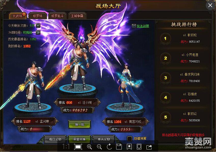 玩家每天在比武场中可以进行5次挑战,挑战的对象是其它玩家,属于间接的PVP。