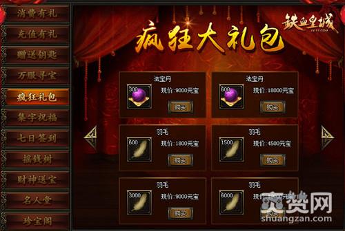 最后,疯狂礼包玩法也得到了完美升级,铁血运营到现在,大部分玩家的硬件如法宝,翅膀,坐骑,转生等硬件都提升到了相当高的水准了,想要再升级,需要海量的材料,这就注定了玩家需要漫长的积累或者大量的元宝消耗!现在疯狂礼包来袭!只需要花费平时三分之一不到的元宝,就可以购买到轮回丹(大),高级转生丹,幻灵丹(中),坐骑丹,法宝丹,羽毛各种各样的升级材料!