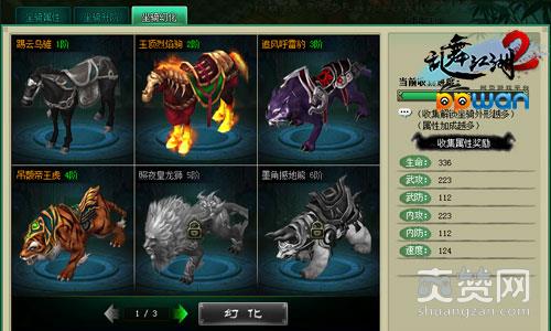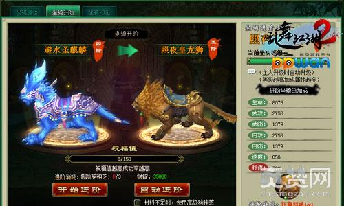 不过和数码宝贝不同的是,在ppwan《乱舞江湖2》中坐骑进化是由玩家自行主导的,在这一过程中玩家需要为坐骑进化准备大量的(低、中、高)驹神芝还有大量的银锭,方可将自己的坐骑进化成更高阶。当然在进化的过程中,坐骑会展现出一系列的技能并且为玩家带来永久属性加成!