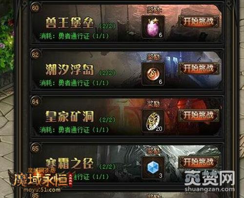 在51《魔域永恒》中,世界虽然饱受伤害但是依然蕴藏着无数宝藏,找到它们将帮助你获得更强大的力量。远古兽王建造的堡垒--兽王堡垒,曾经抵御过无数通关者,但是这里可以获得幻兽材料蛋。无数鱼人聚集之地--潮汐浮岛,挑战这里你将获得法宝帝龙之类材料,锻炼出更厉害的法宝。曾经繁荣的矿洞--皇家矿洞,虽然现已被魔族占领,但是这里富含强化材料魔魂晶石,值得冒险。