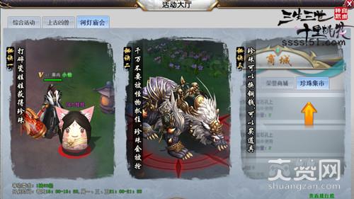 51《三生三世》的河灯庙会,在场景内打碎任意瓷娃娃会获得珍珠,还有概率获得其它奖励。获得的珍珠可以在珍珠集市里兑换很多物品,并且前三名还可获得称号奖励。第一名是霹雳碰瓷王,第二名是大力碰瓷手,第三名是碰瓷我在行。称号可以获得战斗力的加成,并且第一名的珍珠数量多,换取奖励也更多。