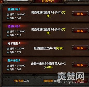 在云中城界面,玩家点击任务大厅,再点击任务后面的领取按钮,可以领取任务。玩家可以选择直接完成任务,也就是花费10金币立即完成任务。任务会每隔30分钟自动刷新,也可以花费金币手动刷新。任务等级为:白色、蓝色、紫色、金色。白色为最低,金色最高。完成任务可获得对应奖励。