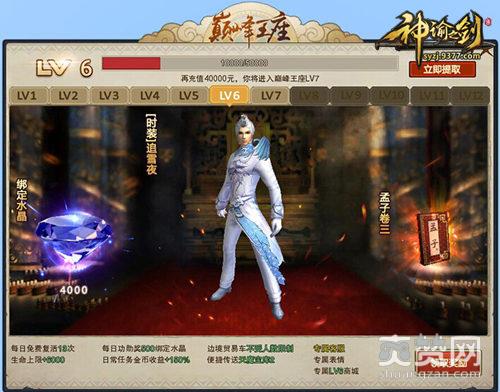 小明看完上面那一段,做了个摊手的姿势模仿了一下薛之谦:“神经病啊,整段垮掉!”嗯,也是,所以咱们直接进入正题不瞎扯了。在9377《神谕之剑》中,VIP系统分为天天向上和巅峰王座两种。VIP享有免费复活、金币收益加成、专属商城等方面的诸多福利和特权,并且在逢年过节和VIP生日更有专属礼包等贴心节日礼包。