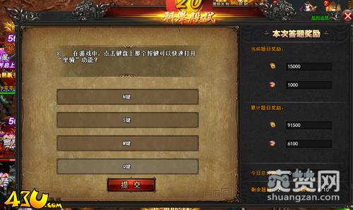 哇!43u《绝世武神》中这几个日常活动都是相当的刺激!难度有等级的悬赏、考验反应力的射武魂、考验智商的科举殿试每一个都很有意思!小伙伴们说是不是呀?喜欢刺激的小伙伴们就赶快加入43u《绝世武神》吧!