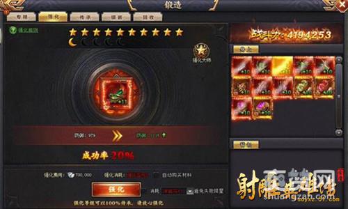 51《射雕英雄传》里面的装备强化前六星基本都很容易。虽然虽然强化规则上写着前6星强化不掉星,许多玩家以为6星不会变为5星,但实际上是从6变7星强化失败后会掉到5星,因此前六星的装备强化可以随意些。