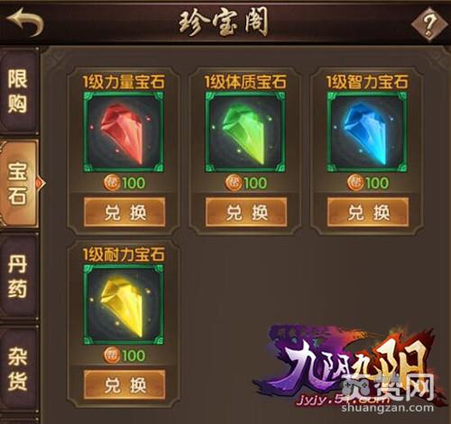 宝石共有四种,力量宝石,耐力宝石,体质宝石,智力宝石。