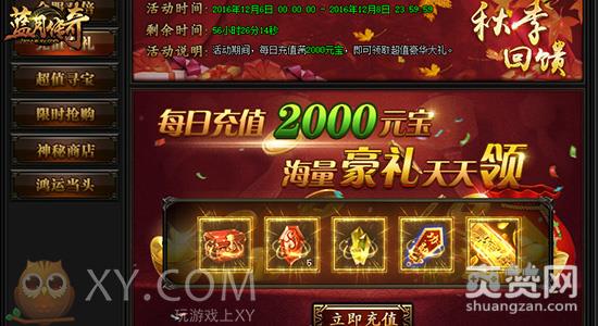 想要快速提升战力却不知从何下手?想要充值元宝就是找不到好机会?那么这次XY游戏《蓝月传奇》大回馈活动是你充值元宝提升战力的最佳时机!活动期间每日充值满2000元宝,就能领取海量豪礼,助你战力飞速提升!同时,活动更有众多稀有材料低价出售,想要提升光翼?还想同时提升转生等级?这一次回馈直接满足你!迅速得到稀有资源武装自己,省去往日里兢兢业业攒钱刷怪的时间,让你有更好的精力迎接强大的BOSS和热血的PK。