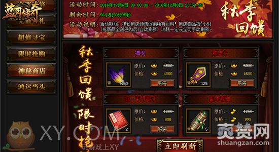 神秘商店再次现世,神秘物品等待你去深度发掘!XY游戏《蓝月传奇》本次大回馈继续给大家带来最丰厚的福利,传说中的神秘商店限时重新开启。XY游戏《蓝月传奇》神秘商店中会出现各种稀有材料物品,价格低廉,数量丰富,商店物品每2小时自动刷新一次,消耗一定数量的元宝就可以直接刷新。如此大力度的促销,还不赶快买买买?赶不上这次就不知还要等多久了哟!