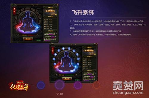 51《铁血皇城》本次新资料片化境飞升主要带来全新的飞升系统、飞升BOSS、神力特戒和防御特戒。飞升系统于角色达到八转100级开启,点击角色面板左侧“飞升”即可进入相应的界面。飞升系统分有10大境界:启智、凝神,定星,洗髓,坐照,通幽,聚星,从圣,神隐,大自由。每突破一个飞升境界都将增加角色飞升属性,突破境界越高,增加的属性越高。