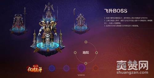 突破境界只是飞升服的前菜,获得足够实力后前往上神之地挑战飞升BOSS才是大餐,天煞、地陀、黄猿、阴辽四大飞升BOSS携带着大量的飞升材料及8-14转装备等待大家去夺取。角色飞升达到“启智”境界后开启 “神力特戒”槽位和”防御特戒”槽位,神力特戒增加伤害输出,防御特戒抵消承受伤害。通过“神力碎片”、”防御碎片”加“特戒碎片”合成,不仅外形更霸气,属性也更加逆天。