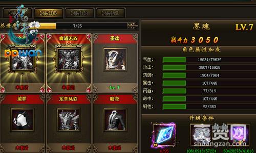 此外,ppwan《花千骨》中的时装还可以进行升阶、镶嵌守护珠……通过时装升阶石升阶后的时装都可以获得一定的气血、攻击和防御这三项永久属性加成。而镶嵌守护珠的前提则是需要已激活的时装穿戴时装勋章,有了勋章才可以镶嵌守护珠,狂飙战力,傲立仙侠!