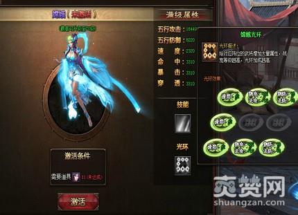 玩家激活战宠嫦娥之后除了会大幅提升自己的战斗力之外,还可以获得新的战宠光环。战宠嫦娥的技能是寒月兔袭,对敌方全体造成130%的五行伤害。