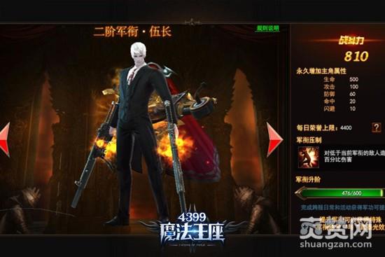 在《4399魔法王座》跨服战场当中,还有着自称体系的战场军衔奖励及荣誉兑换设定。战场军衔,意味着玩家在跨服战场当中的身份地位,并且会随着玩家积极参与跨服战场的作战而逐步积累提升。更高的军衔,将让玩家在战场上拥有更强悍的实力;荣誉则是在跨服战场上击杀敌人或怪物后才可获得的重要奖励,并可用于兑换各类技能书籍、升阶道具等珍稀物品。