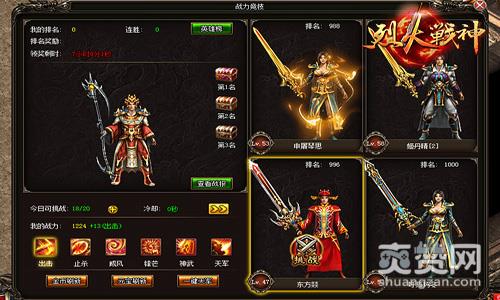 竞技场,这是一个古老而又永远保持青春诱惑,历经千年风霜而从不磨却魅力,成为万千女性效仿的对象。因为从诞生那一日开始,竞技场就代表着PK,体现出热血,充满了激情,无论在竞技场上感受多少回,那份激动依然不会厌倦,就好像心中女神,即使已经人尽可夫,从粉红色变成黑要耳,但依旧永远闪耀着光芒。在萝卜玩《烈火战神》竞技场中依靠的就只有自己一个人,就是最纯正的一对一,也是最原始的PK。不过为了防止无良高手以强凌弱,所以竞技场规定只能挑战排名比自己前的勇士,每次有四名任君挑战,胜利则可以继续往下挑战,输的只能原地踏步。所以从名次升降中,你就可以清楚看见自己到底处于哪一个层次。