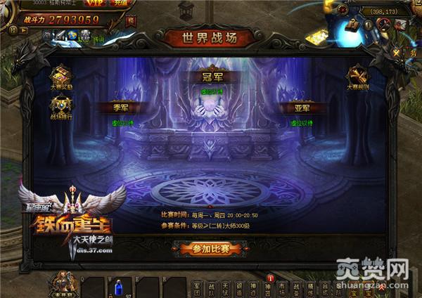 37《大天使之剑》的世界服战盟PK赛为2分进阶制,个人和战盟排行,联合战盟可增加战局变化性,防止一个战盟持续碾压。比赛开始前5分钟可以自由进出,比赛开始后,地图只出不进,进入地图每隔一段时间可自动获得人物经验,死亡后依然可以呆在地图内。