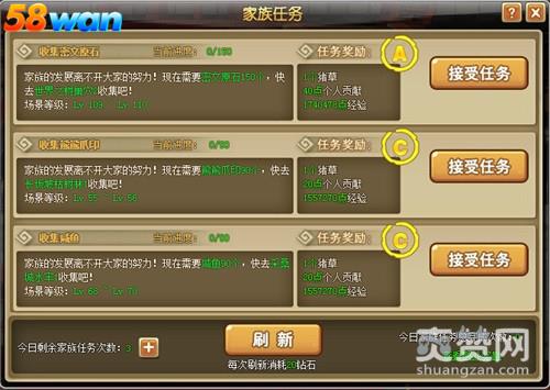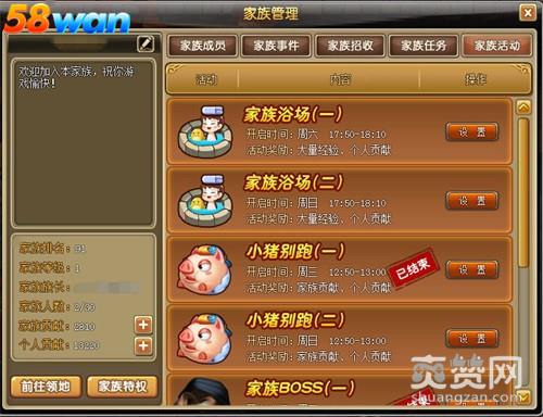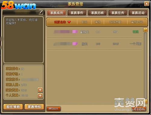 在58wan《冒险大陆》创建或者加入了一个家族,那么想要壮大家族团结必不可少。积极完成家族任务,为了家族的崛起做自己的一份贡献。与小伙伴组队冒险,有了家族的庇护,就算遇到危险也不再害怕,毕竟家族作为一棵大树为大家遮风挡雨。为了家族这颗大树更好的成长,赶快来完成家族任务吧!