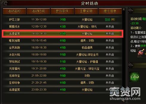 名酒鉴赏可以说是923yx《红名传说》中一个比较休闲的活动。而且,鉴赏活动是在每天的14:00-14:30这个时间段开启的,大家只需要在指定地方挂机就可以轻松获得经验。