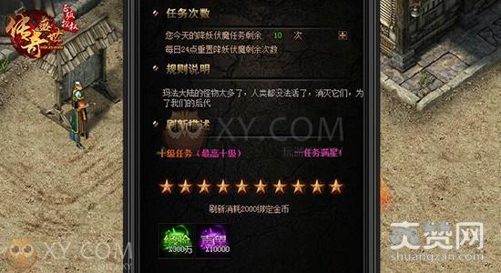 问:XY游戏《传奇盛世》购买额外降妖伏魔任务次数需要多少元宝?