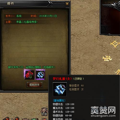 对方同意后,同时双方通过邮件获得玫瑰花和礼服