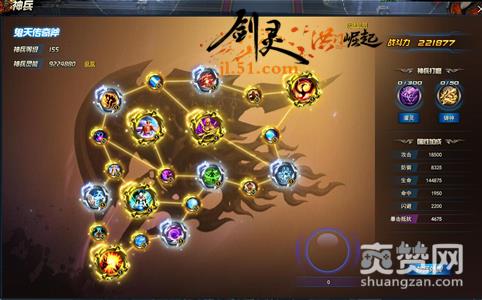 当玩家获得神兵后,可以一步步解锁神兵技能,增强自身实力。不过必须按照指定顺序解锁神兵技能点,神兵技能点解锁后才可以进行升级,升级需要消耗“神兵灵能”。每次升级神兵技能失败,会将一部分的神兵灵能存入神兵灵池中,神兵灵池中的灵能积攒到一定量级时,才可以进行领取。