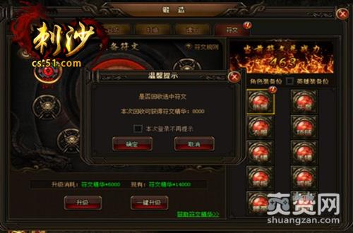 51《刺沙》中的符文系统不仅可以增强属性增加效果,并且还可以通过升级来使符文的威力更加强大。正所谓符文人人有,但威力各不同。别人的1级符文对上你的2级符文,那威力可就差上了许多。不过想要升级符文的话,就需要消耗符文精华。玩家可以通过击杀卧龙山庄BOSS以及帝天宫殿中的BOSS获得精华,并且将不需要的符文回收掉也能够获得一定的符文精华,让玩家身上的低等级符文也不会被浪费。